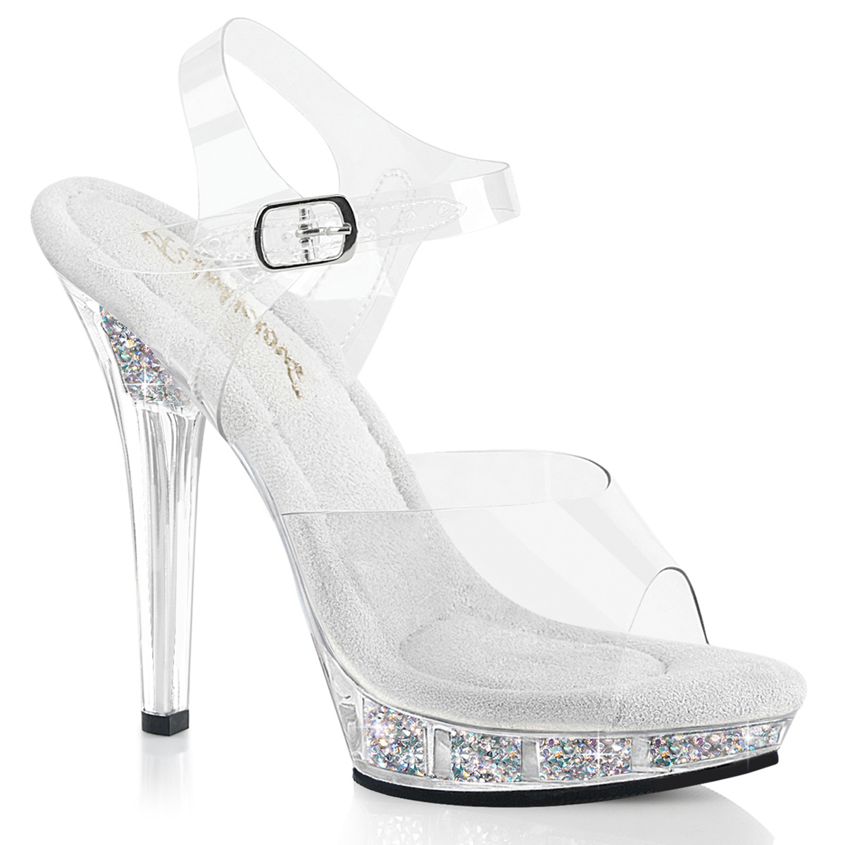 5" (127mm) Heel, 3/4" (19mm) Platform Ankle Strap Sandal Featuring AB Rhinestones Inserted in the Platform Bottom & Heel