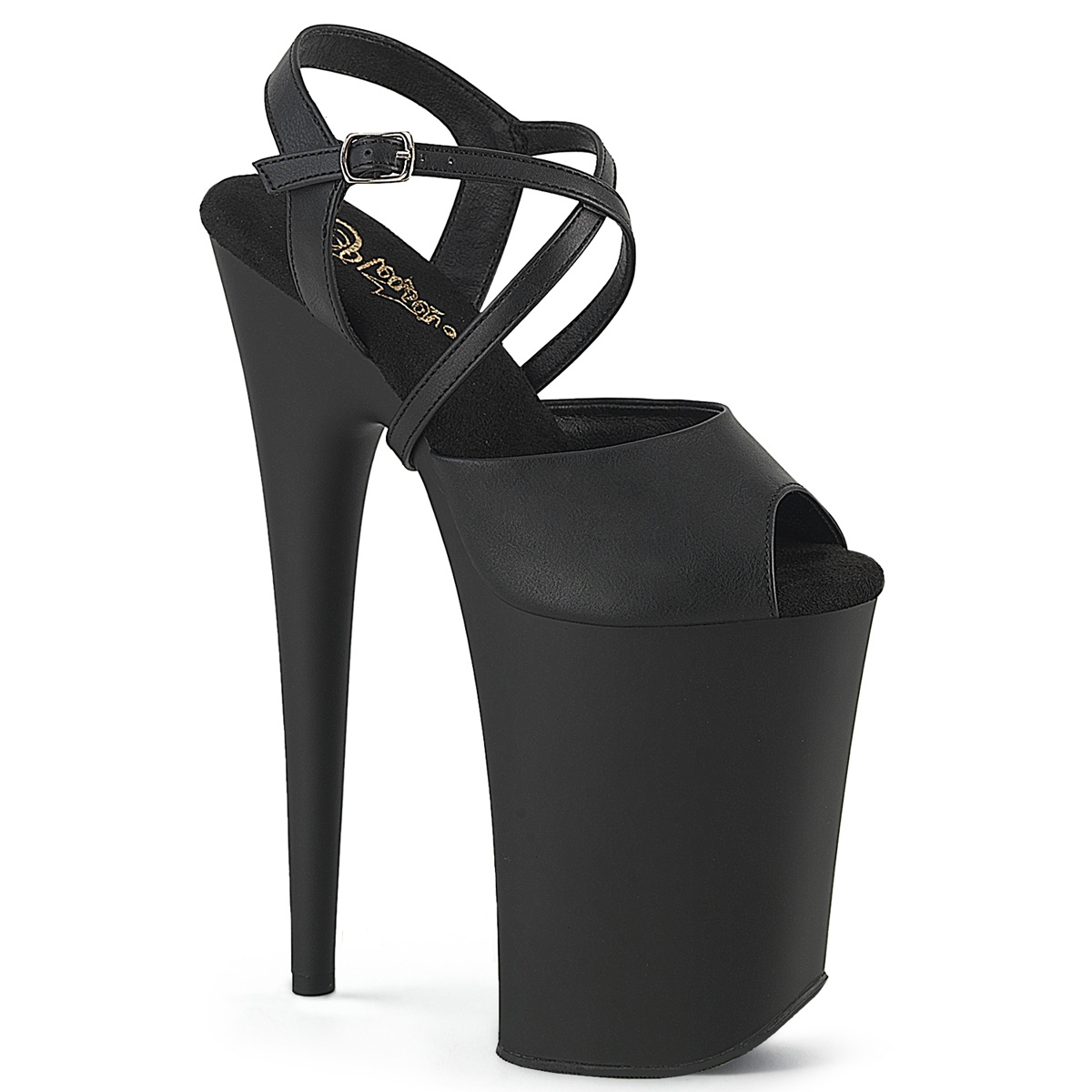 9" (230mm) Heel, 5 1/4" (135mm) Platform Ankle Strap Sandal Featuring Long Criss Cross Strap Wrapping Around the Insteps & Platform Bottom. **WARNING: Extreme High Heel. Not Recommended for Walking or Dancing.